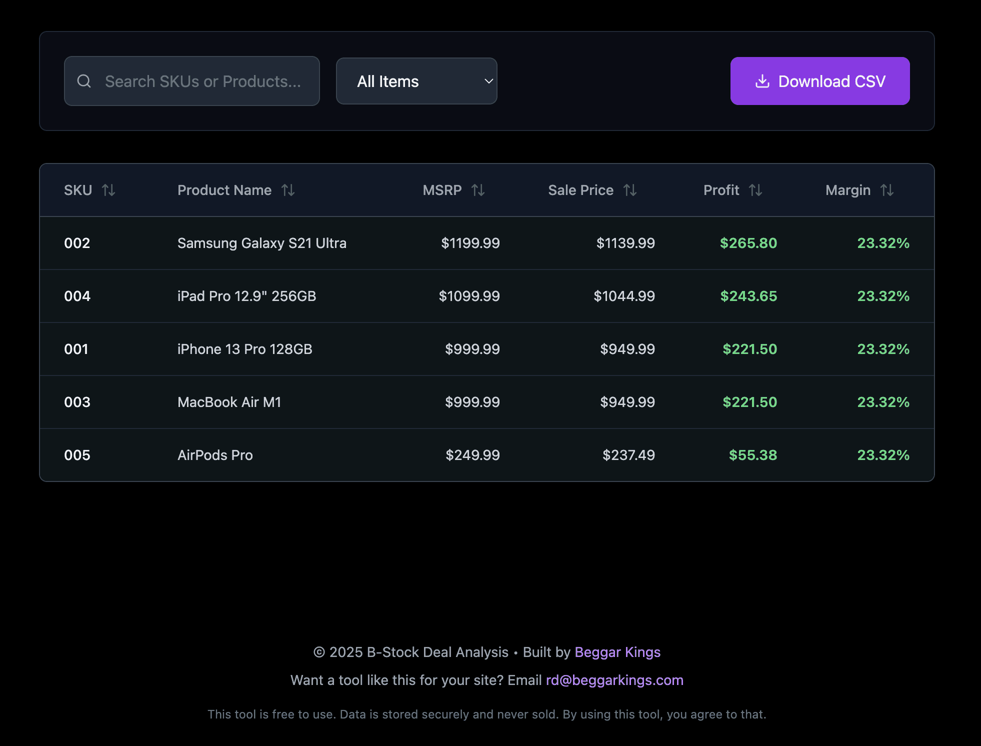 We turned a spreadsheet nightmare into a razor-sharp app for liquidation resellers. From visual UX to AI-integrated backend, this SaaS tool helps flippers spot profitable lots instantly and move with confidence.